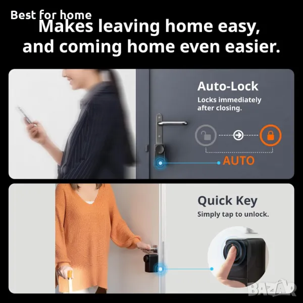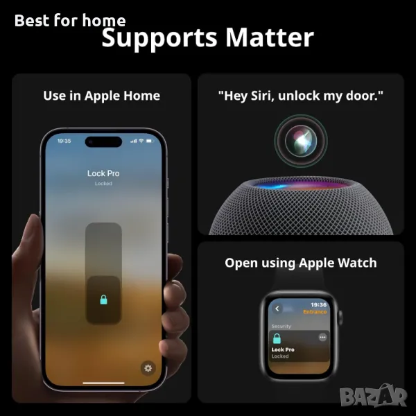 Отключване чрез гласова команда с поддръжка на Matter: Комплектът Lock Pro е съвместим с Hub Mini Matter и поддържа Matter, така че може да се използва с iPhone, Siri и Apple Watch чрез HomeKit. Освен това е съвместим с платформи на трети страни като Alexa и Google. Никога не се налага да ставате и да отивате да прочетете вратата благодарение на функцията за интелигентни гласови команди.
