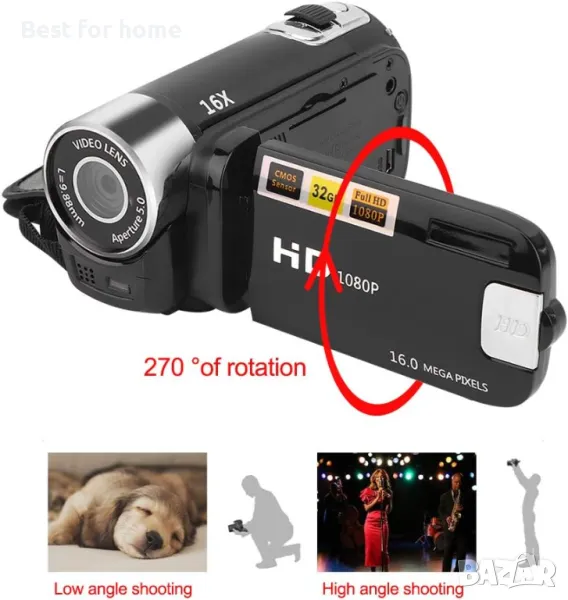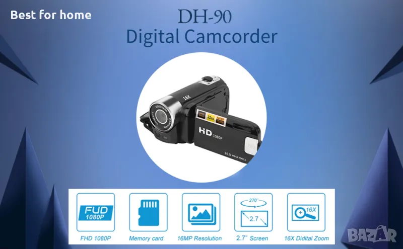 DH‑90 16X цифрово увеличение 2,7-инчов екран с цветен дисплей Камера с висока разделителна способност Изображение Видеозапис Видеокамера
