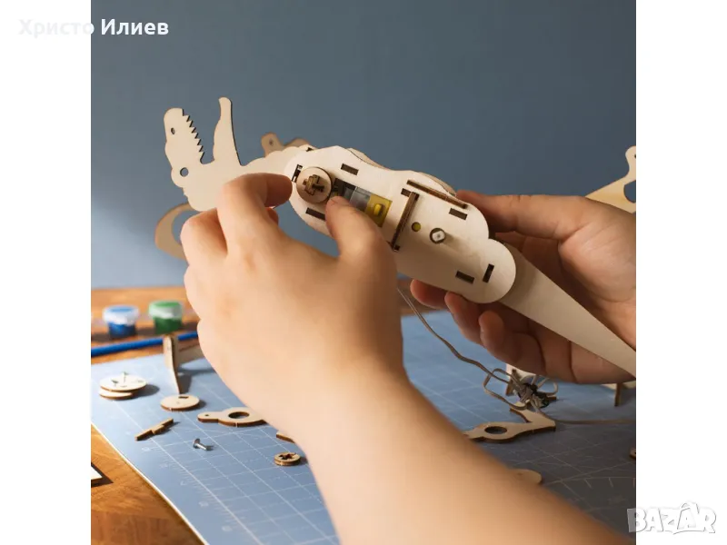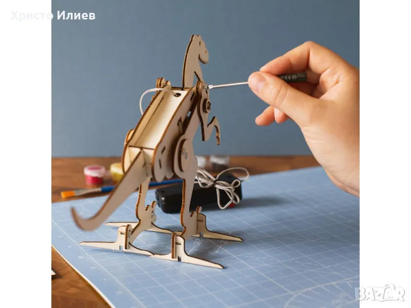 . Дървен комплект за изграждане на движещ се T-Rex, идеален за изграждане с любим човек.
