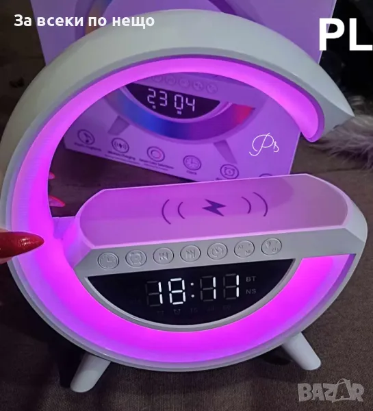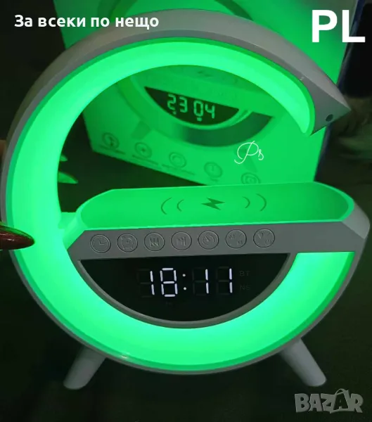 Смарт Лампа 4в1 - Часовник, Тонколона, Лампа, Безжично заряднo