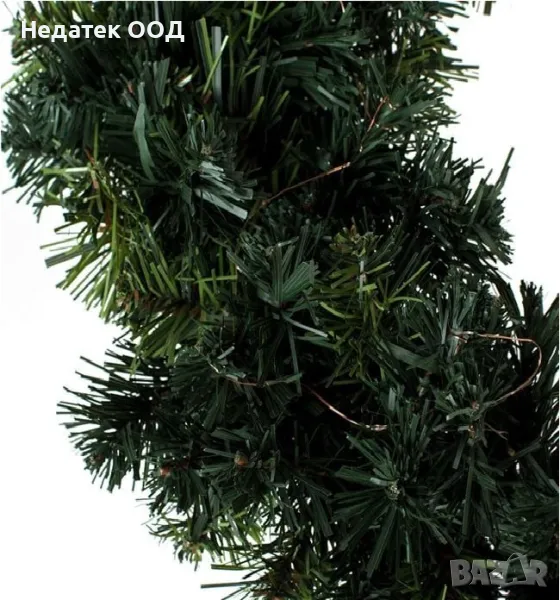Коледен декоративен венец със светлини, Зелен, Ø70см