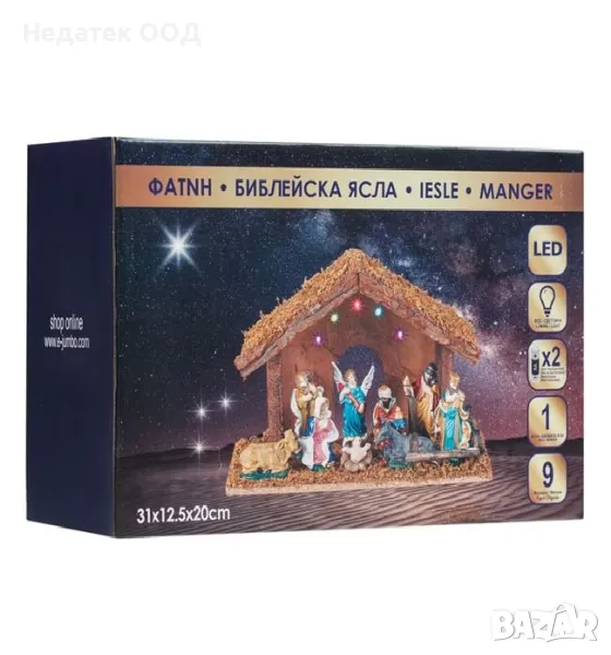 Коледна ясла с 5 светодиода , Кафяв, 31x12.5x20cm → Обява 48374726