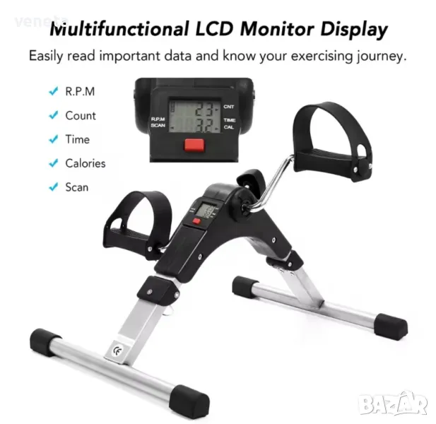велоергометър 2 в 1 рехабилитационен фитнес велосипед, за ръце и крака, сгъваем, LCD дисплей → Обява 48375097