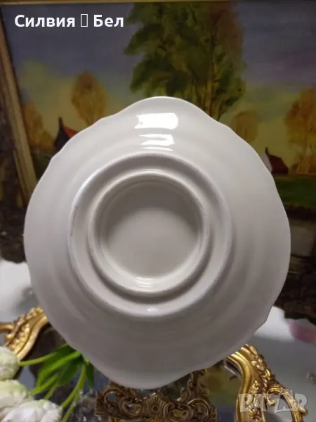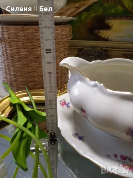 Ретро сосиера⚜️Vintage порцелан С прикрепена чинийка.Бароков стил, с красиви извивки, разпръснати цветя, релеф и златен кант. Основният цвят е млечно бяло или слонова кост. Липсва маркировка, тъй като е от сервиз и не всички части са били маркирани. Бавария. Цена - 3️⃣0️⃣лв...•´¨) 🌲¸.•¨)🌲🌱... (¸.•¨🌲¯`*•.🍃🌲🍃