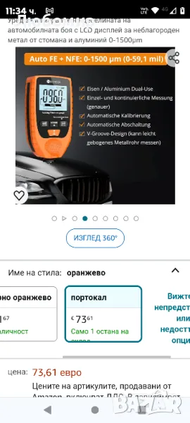 Уред за измерване на дебелината на боята Neoteck Уред за измерване на дебелината на автомобилната боя с LCD дисплей за неблагороден метал от стомана и алуминий 0-1500μm.Уред за измерване на дебелината на покритието за автомобилна боя: Уредът за измерване на дебелината на покритието се използва за измерване на дебелината на покрития и покрития метален лист върху метал, напр. лак, емайл, хром върху стомана, лак и анодизирано покритие върху алуминий / мед.Автоматично отчитане: Разработени с двойна технология, те позволяват автоматично откриване на железни и цветни субстрати, с които дебелината на автомобилните бои може да бъде измерена без разрушаване.Параметри: обхват на измерване: 0 - 1500 um (0 - 59.1 mil); точност: ± (3% + 2um); разделителна способност: 0,1 um / 0,01 mil; минимален радиус на кривина изпъкнал: 1,5 mm; минимален радиус на кривина вдлъбнат: 25 mm; минимален обхват на измерване: диаметър 6 mm; база за калибриране. включени включени