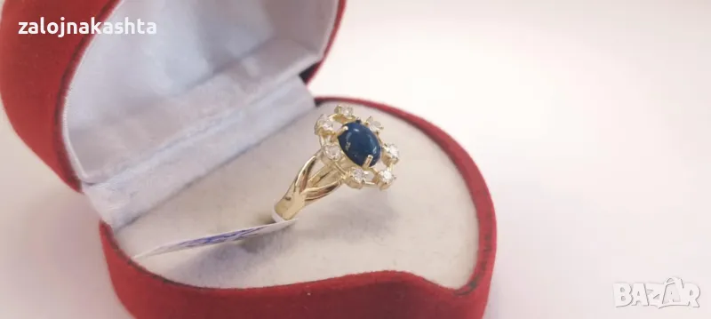 Нов-Златен пръстен с Сапфир и Брилянти-3,41гр/14кр → Обява 48376677