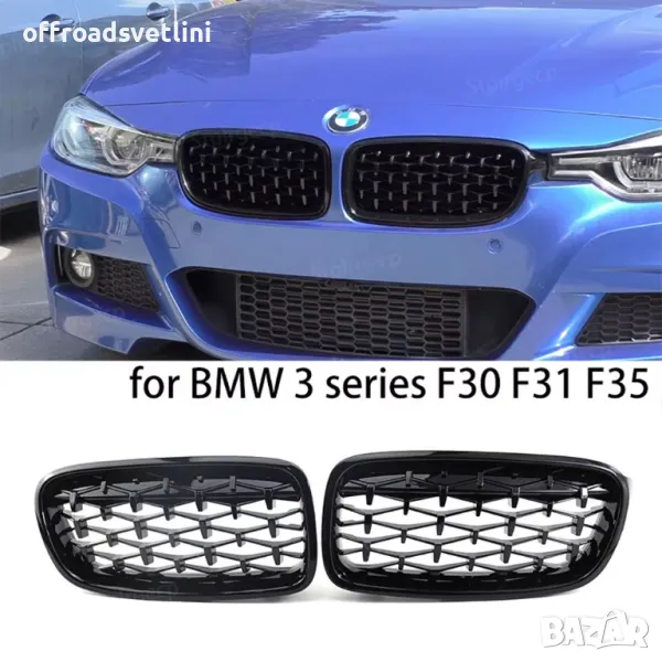 Бъбреци Решетки за BMW 3-та серия 2012-2018 F30 F31 Diamond Style Черен Гланц