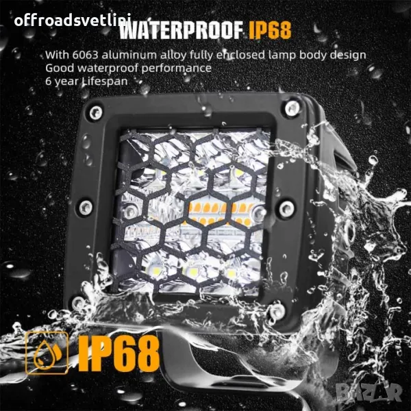 Комплект от 6 броя Лед LED Халогени Аварийни Лампи Бяла + Оранжева Светлина 12-24V Dual Combo Light Двойна Светлина Flash Блиц Мигащи 6 режима