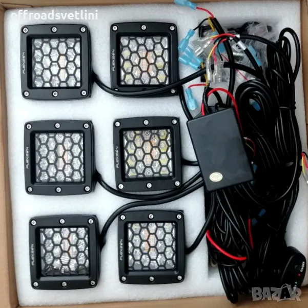 Комплект 6 броя LED Диодни халогени с аварийна светлина блиц офроуд