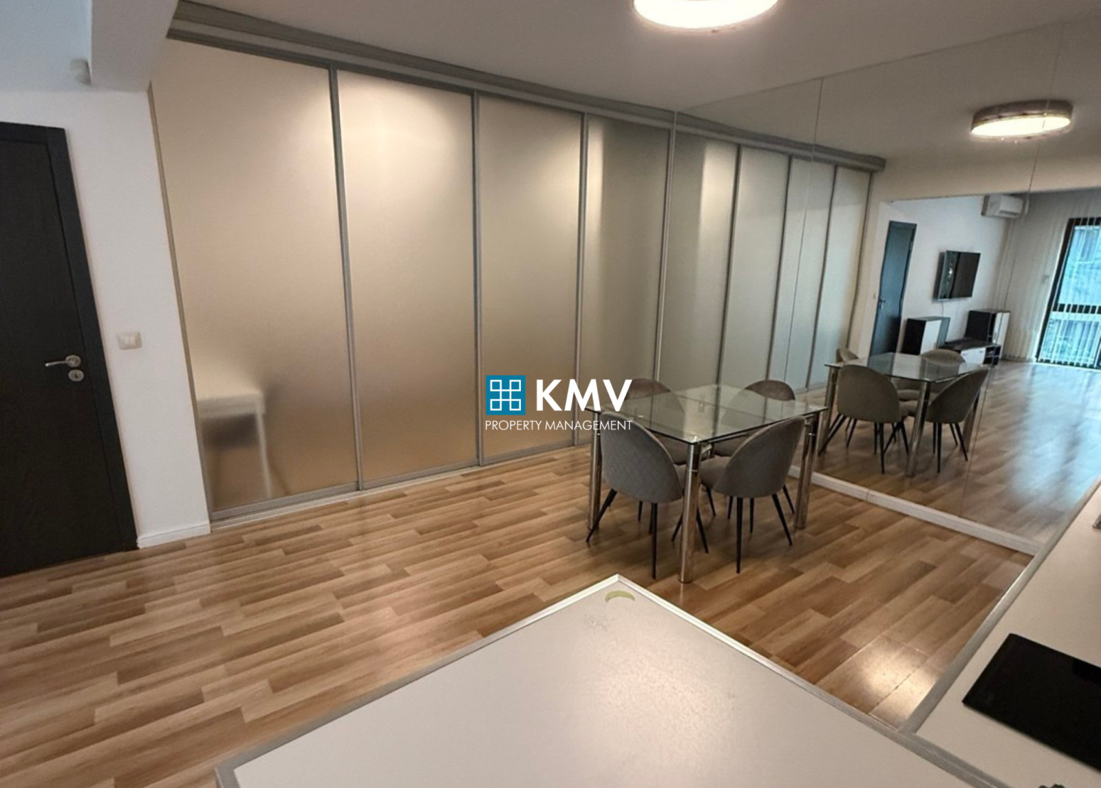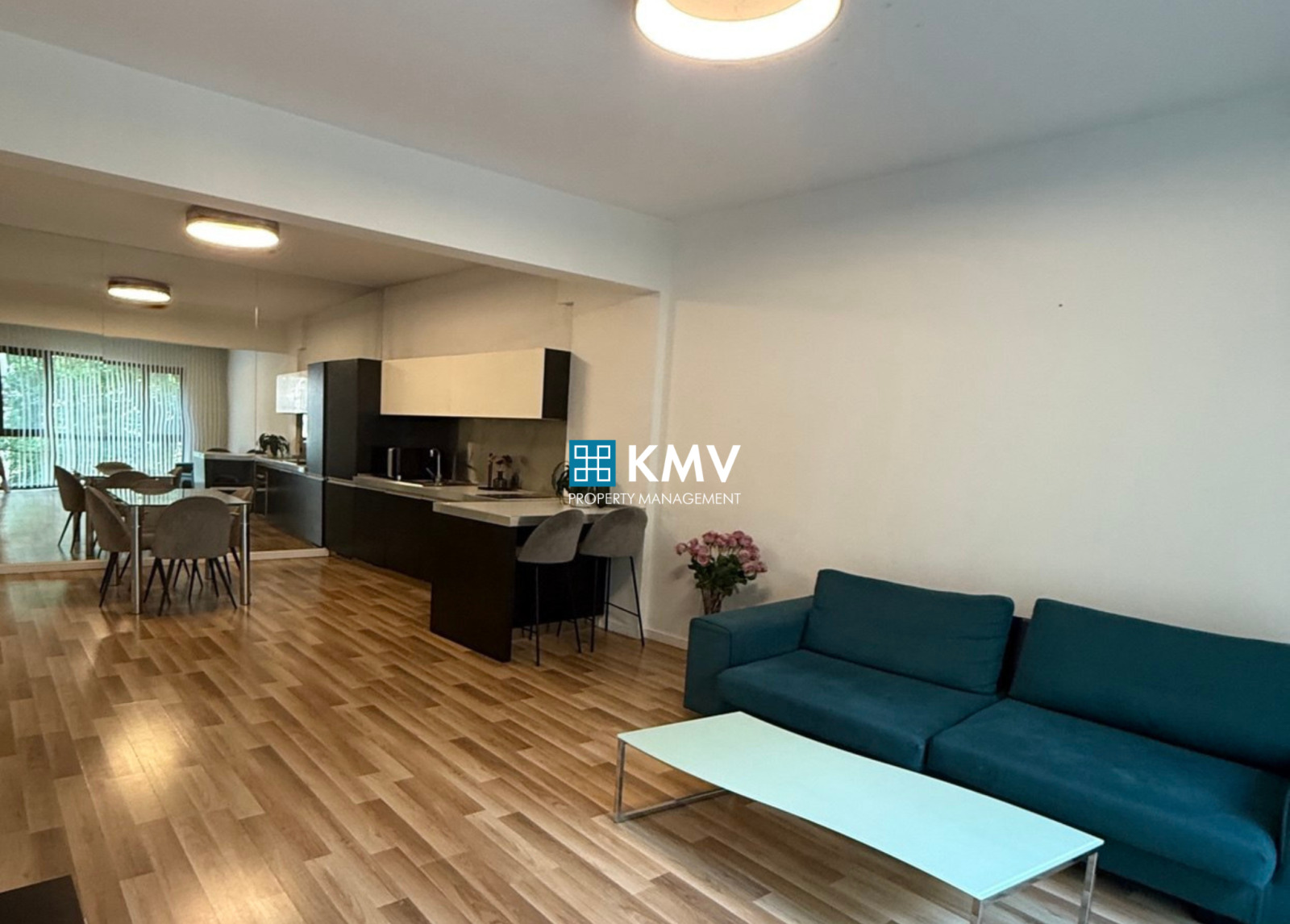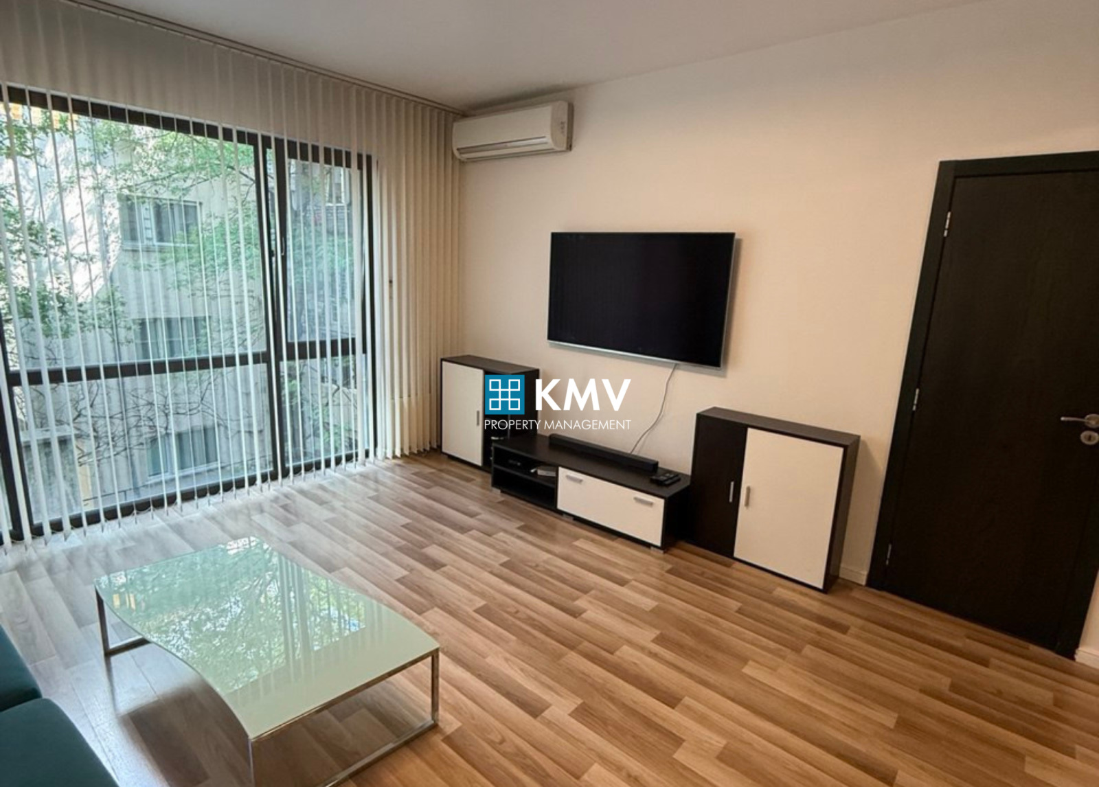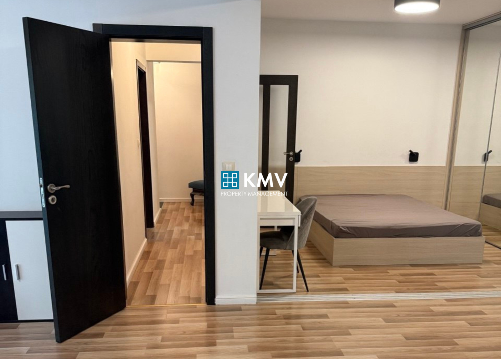Локацията е изключително удобна и комуникативна намира се на метри от заведения, магазини, банки, офиси, културни и административни институции, а в близост има спирки на градския транспорт и метрото, училища и детски градини, което прави мястото идеално както за млади професионалисти, така и за семейства. Въпреки централното си местоположение, апартаментът се намира на тиха улица, което осигурява спокойствие и уют. Той е готов за нанасяне веднага и предлага отлични условия за дългосрочен наем.