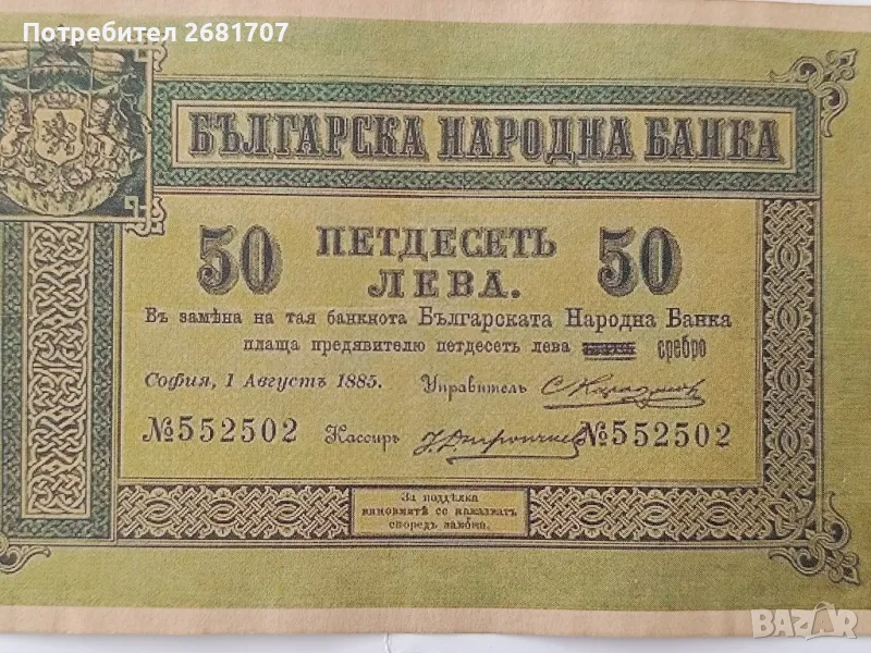 банкнота 50 лв 1885 г. → Обява 48377802