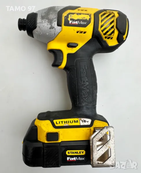 импакт драйв (ударен гайковерт) Stanley Fatmax. Машината има козметични следи от използване, но работи отлично и без никакви забележки, внос от Франция. Обявената цена включва импакт, 2 батерии, зарядно устройство и оригинален куфар за транспортиране.