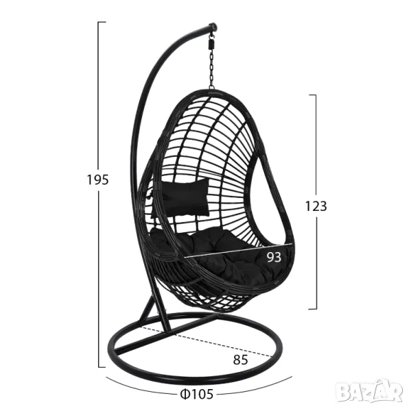 Люлка ЧЕРНА ВИСЯЩА, снимка 1 - Градински мебели, декорация  - 48378333 Люлка ЧЕРНА ВИСЯЩА, снимка 2 - Градински мебели, декорация  - 48378333 1/2