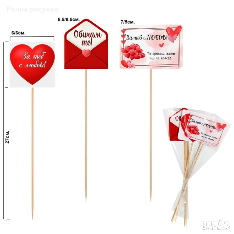 Четиринадесета снимка-Декоративна клечка "Обичам те" - дърво /6 броя в стек - микс/.