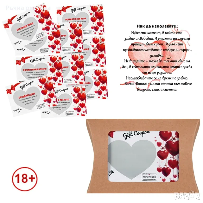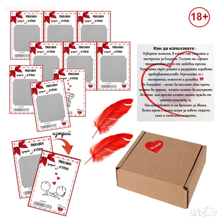 - 9 броя скреч любовни купона (18+)