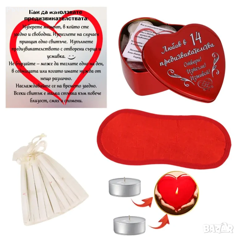 Четвърта снимка-Kомплект "Игра на изкушенията" в метална кутия сърце.