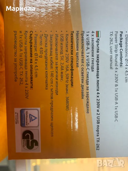 Кръгъл Разклонител с 4 Гнезда и 2 USB / Разклонител 3680W → Обява 48379168
