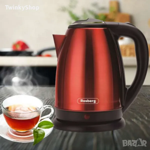 Електрическа кана, 1800W, 1.8л., Корпус неръжд. стомана, S/S, Инокс/Черен, Червен металик