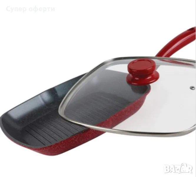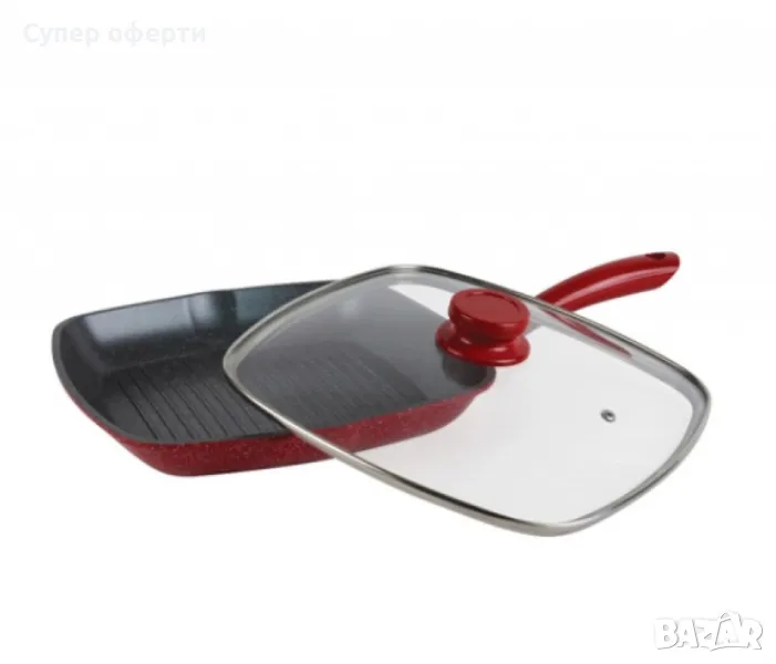 Тиган грил с капак ,Мраморно покритие, индукция, Червен