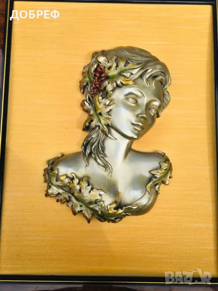 Картина с калаена статуетка - бюст на жена на фон в цвят слонова кост