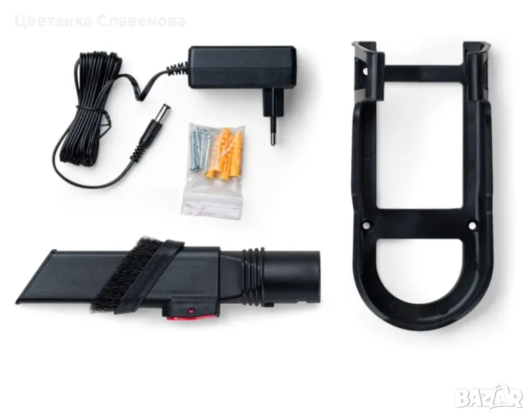 Аксесоари: включени 2 четки, 1 приставка с четка за всички видове подове и 2 специални четки за килими. Включен е и аксесоар 2 в 1 с малка глава за дивани и тапицерия. Много лека прахосмукачка.