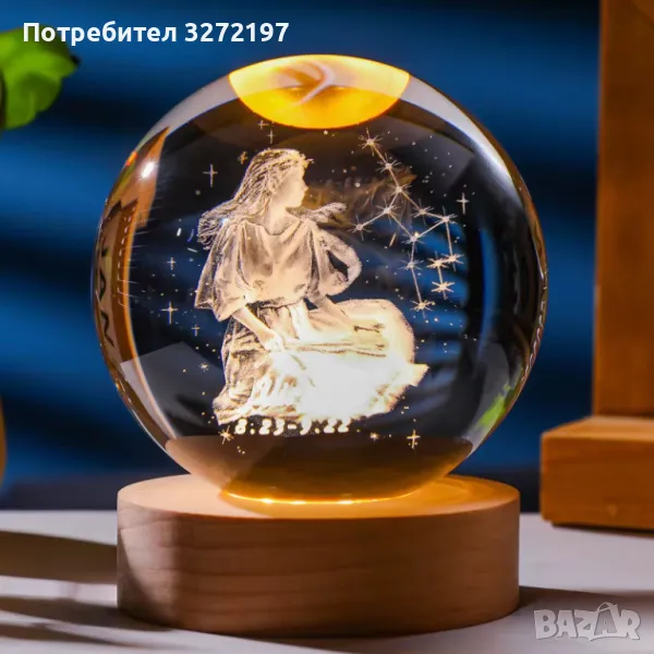 3D LED Светеща кристална топка/лампа,Лазерно гравирана, 3D сензорна сфера-зодия ДЕВА