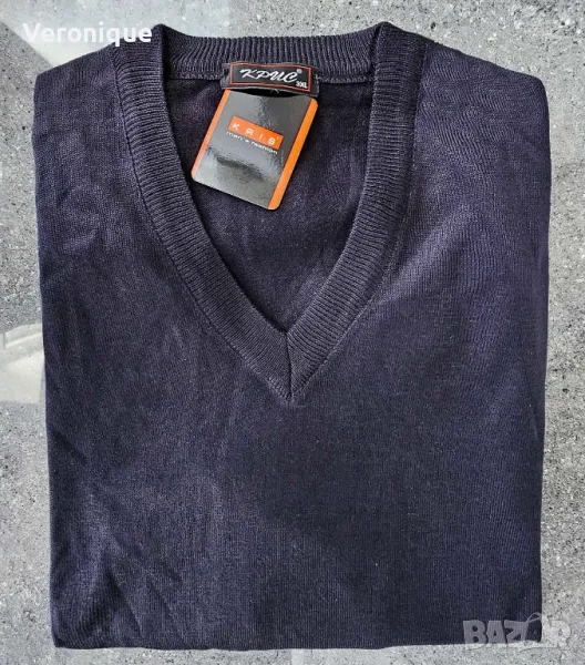 Продавам нов мъжки стилен пуловер от фина вълна размер 3XL с V-образно деколте и реглан ръкав на българската фирма KRIS – lady`s & man`s fashion