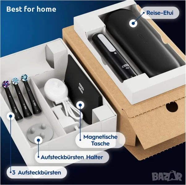 Oral-B iO надминава всички очаквания за четка за зъби с невъобразимо почистващо действие и сензационно усещане в устата. Иновативната система за магнитно задвижване на Oral-B iO доставя енергия точно до върховете на космите, които се плъзгат от зъб на зъб с нежни микровибрации, за да се постигне ефективно и приятно почистване. Наслаждавайте се на усещане за свежест като при зъболекар всеки ден. Oral-B iO ви помага да защитите венците от твърде силен натиск. Интелигентното управление на налягането предупреждава за прекалено голямо налягане с червена светлина и свети в зелено, когато използвате оптималното налягане. Интерактивен дисплей позволява лесна навигация през различните функции и настройки на четката. Изберете между различни режими на почистване, получете персонализирано обучение в реално време и напомняне за смяна на главата на четката. Визуалният таймер предоставя информация за препоръчителното време за почистване от 2 минути. Четката за зъби ви приветства сутрин и ви дарява с усмивка след почистване за отлични резултати. Приложението предлага интерактивна 3D графика, докато Oral-B iO разпознава вашата почистваща техника благодарение на иновативна технология за разпознаване с изкуствен интелект. Насладете се на вдъхновяващо миене на зъби сега!