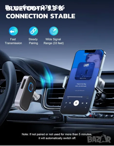 【Наслаждавайте се на безжично поточно предаване на музика】Този Bluetooth адаптер за кола може да бъде свързан към автомобилни аудиосистеми без Bluetooth, домашни стереоуредби, високоговорители, кабелни слушалки чрез 3,5 мм AUX адаптер; И оборудван с Bluetooth 5.0 чип за стабилна връзка / бързо предаване / широк обхват на сигнала. Просто го сдвоете с телефона си и започнете да слушате любимата си музика!