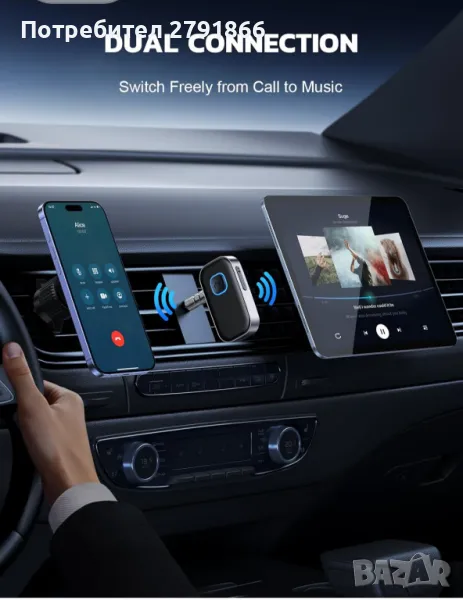 - 【Двойна връзка】Преносимият Bluetooth стерео адаптер може да бъде сдвоен с 2 устройства едновременно. Можете да се насладите на музиката си и никога да не се тревожите за пропуснати обаждания. Веднъж сдвоен, приемникът за кола автоматично ще се свърже отново с вашите последно сдвоени Bluetooth устройства, стига да са в безжичния обхват.