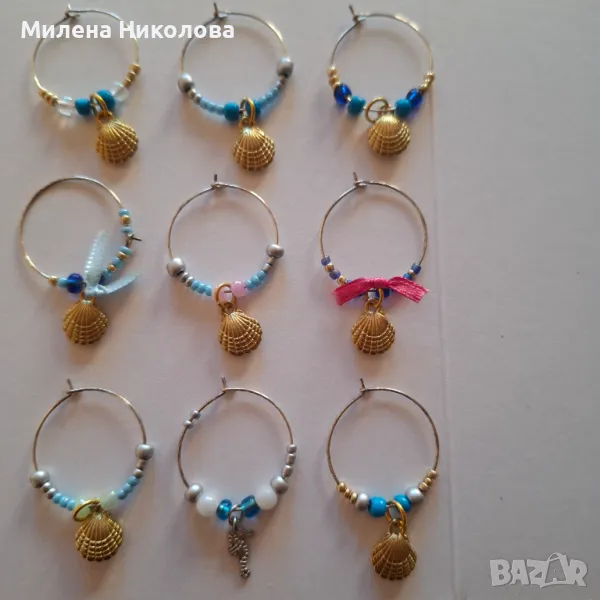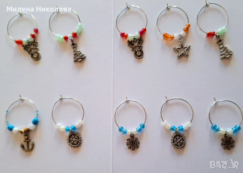 Комплект пръстени за чаши с коледна висулка и мъниста. С украсата на столчето всеки ще разпознае своята чаша на коледното парти.