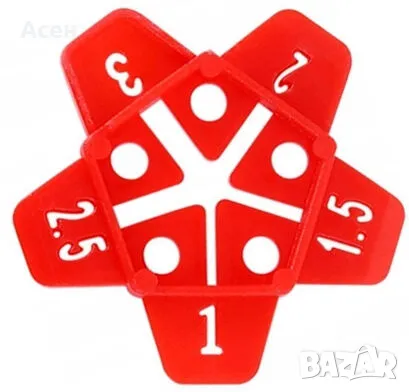 плочки: плочки, плочки и други подови материали TAGRED ще ви позволи бързо и лесно да получите фугираща смес с подходяща дебелина. Ръбовете с различна ширина ви позволяват да регулирате празнината според вашите нужди, а изрезите вътре в звездата показват действителната ширина на фугата.