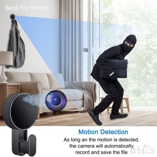 Тази шпионска камера без видими лещи е идеална за използване в домове, офиси, складове, магазини и други места, където е необходимо тайно наблюдение.