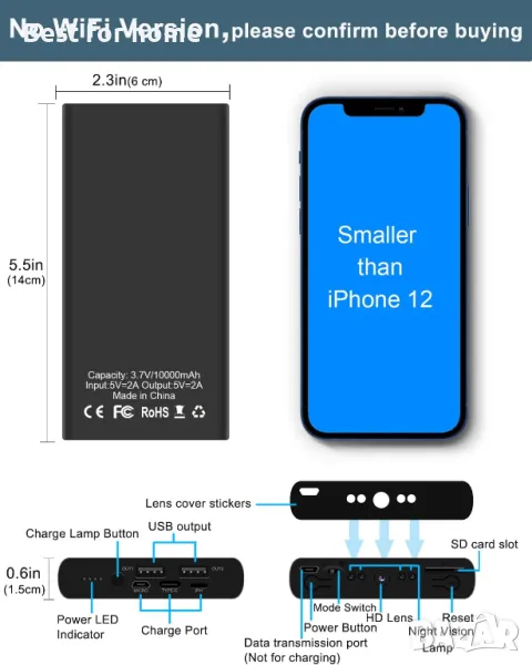 Това е истинска захранваща банка с HD шпионска камера, която не само може да се използва като източник на енергия за зареждане, но и като скрита камера за запис. Никой няма да забележи, че това е скрита шпионска камера. Батерията с голям капацитет може да поддържа продължителна работа, видео по всяко време и няма да пропусне прекрасни моменти.