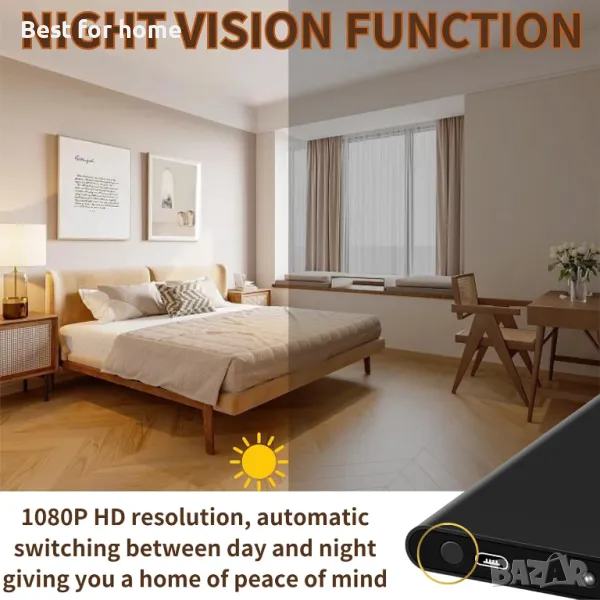 【Подходящ за различни сценарии】: Скрита камера за наблюдение на сигурността на дома и офиса, подходяща за наблюдение на домашни любимци, бебета и възрастни хора, осигуряваща цялостна защита на сигурността.