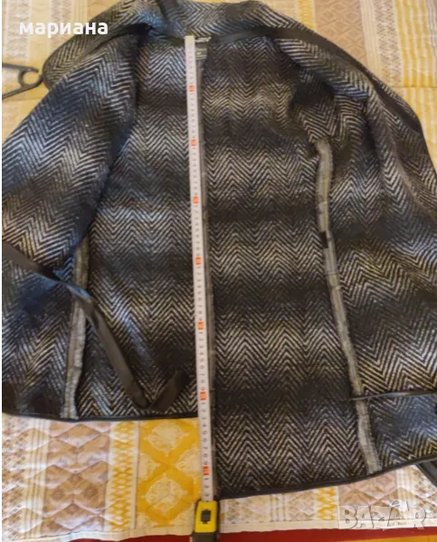 палтенцето е ново,купено ,но така и не му дойде реда.асиметрично и стои много елегантно.топличко е и е подходящо за пролет и есен