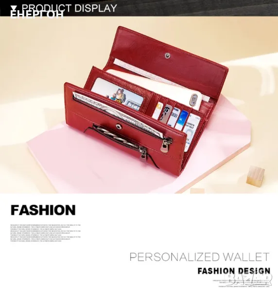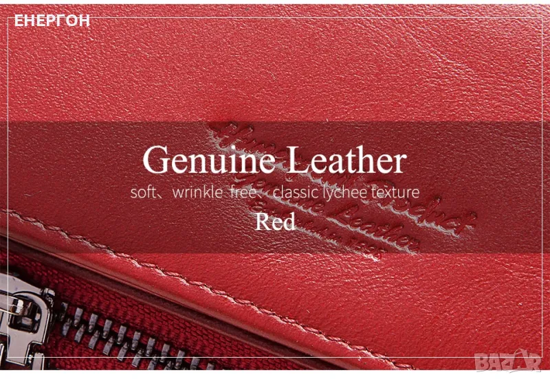 Лукс дамско портмоне от червена естествена кожа. Лимитирана серия с малко бройки - няма риск някой да има като вашето