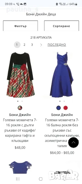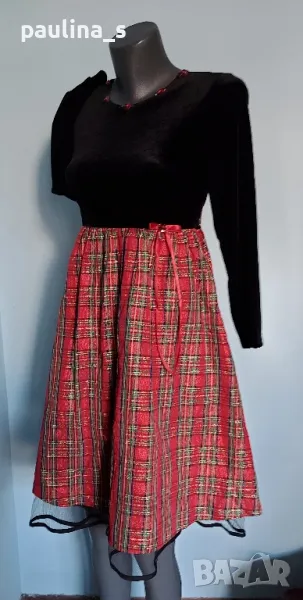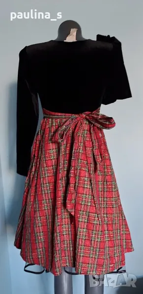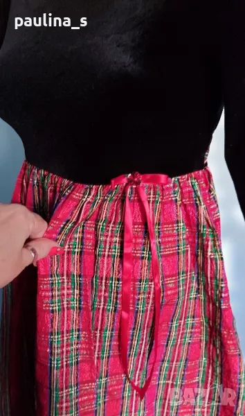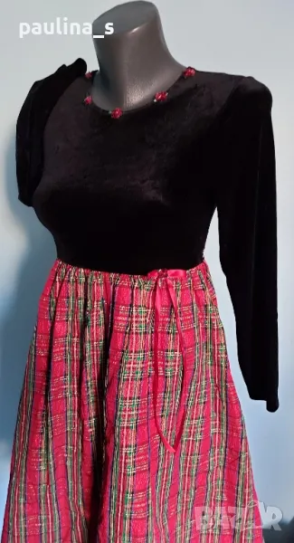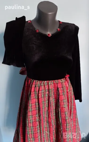 1️⃣. "Bonnie Jean" USA. Цената е крайна, без пазарлъци 32 евро. Коледна маркова рокля от еластично кадифе и тафта с ламе и блясък. Хастарът в долната част е от черен тюл с рюш, за разкош. Горната част е много еластична и има декорации, панделка 🎀 отпред и фиксиращ широк колан отзад. Разкошна е.