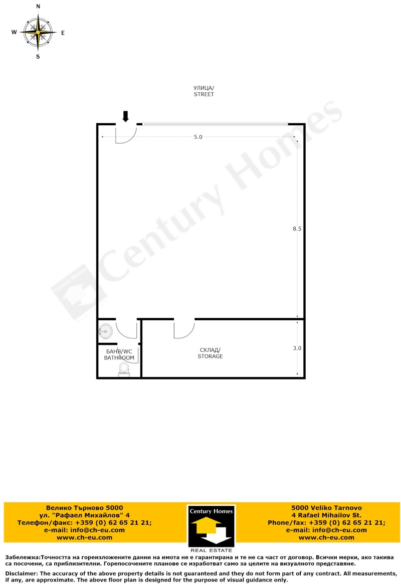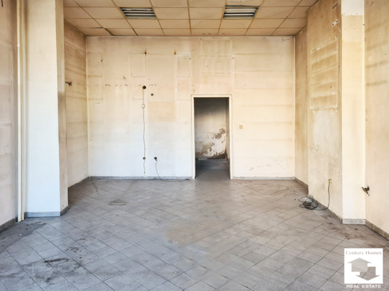 Помещението разполага с витрина от 5м. към тротоар и булевард. Площта на имота е 59 кв.м., от които търговска площ 43 кв. м., както и складово помещение и санитарен възел.