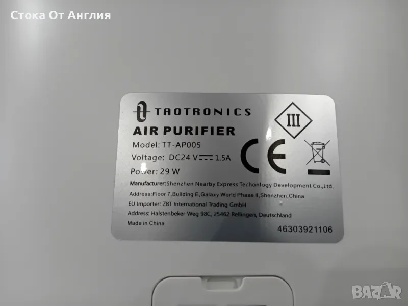 Пречиствател за въздух TaoTronics TT-AP005 → Обява 48388279