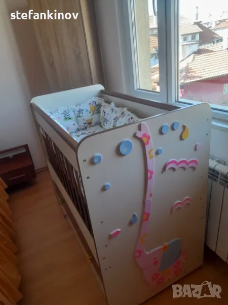 Детско бебешко легло кошара дървено люлеещ механизъм две чекмеджета