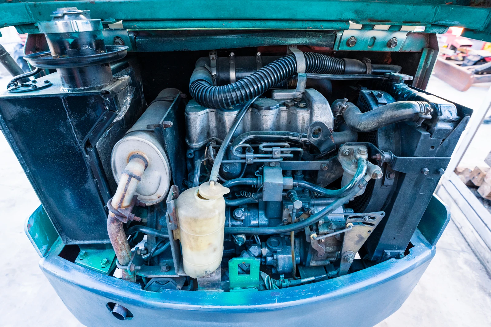 Багерът е в перфектно състояние. Задвижван с 3-цилиндров дизелов двигател на Isuzu, 14 кс. Веригите и звездочките са в много добро състояние.