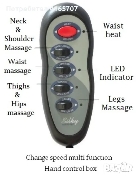 Функции: масажи, успокояваща топлинна терапия, поддържаща възглавница, масаж;