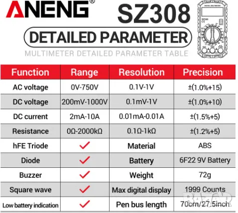 Цифров мултицет ANENG SZ308 → Обява 48389534