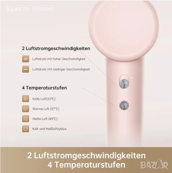 Ултразвуков сешоар за коса Dreame Gleam розов