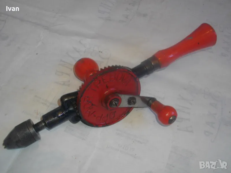 ОПИСАНИЕ на НОВ френски или немски професионален маткап ръчна дрелка - бормашина. Цена 99 лв. Съвсем нов, неизползван и неупотребяван. Отлично работно състояние. Оригинална червена боя, без одрасквания. Немско или френско производство, старо качество. Маркировка OPP-MOR TREBOVA. Дървено покритие на задна и на две странични дръжки на инструмента. Маткапа е подходящ и а работа и за колекции с оглед на качеството си на запазено съсотяние. Масивен чугунен корпус. Дължина на инструмеента - 190 мм. Патронник закалена стомана, самонатягащ 0-8 мм захват. Маткапа е нов, стоял е неизползван без фабричната си кутия, но е в пълна изправност на забчатите механизми и на отронника ,който отваря и затваря съвсем леко и без запъване. Твърда цена 99 лв, без коментар.