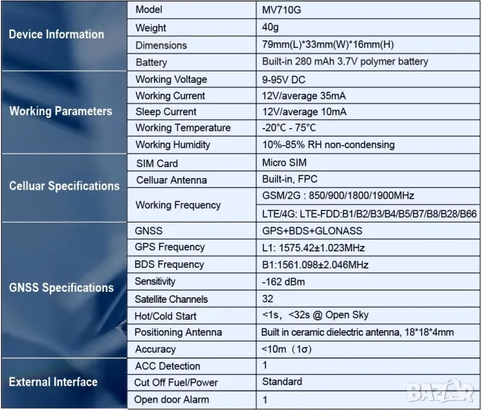 За разлика от повечето модели тракери, които работят само с 2G мрежите на мобилните оператори, този работи и на 4G. А до няколко години всички 2G мрежи ще бъдат спрени.