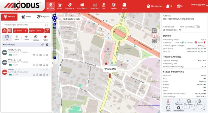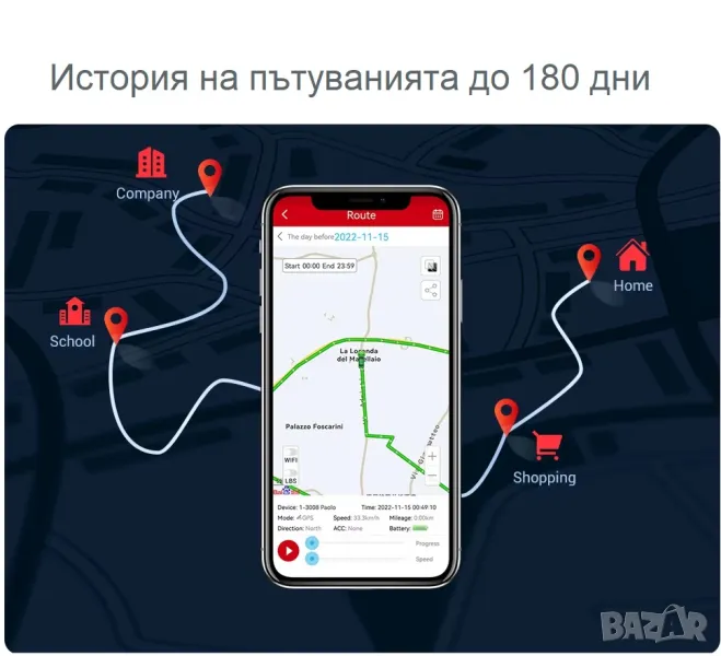 4G GPS тракер, отваряне на врата, превишена скорост, геозони, история, предплатена СИМ