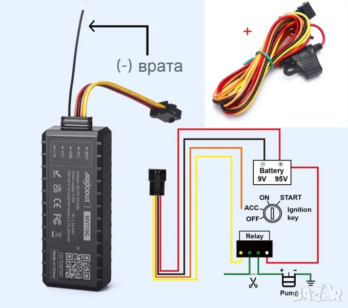 Може допълнително да свържете и реле, чрез което дистанционно, през приложението да прекъснете двигателя. Цена само на релето: 5€