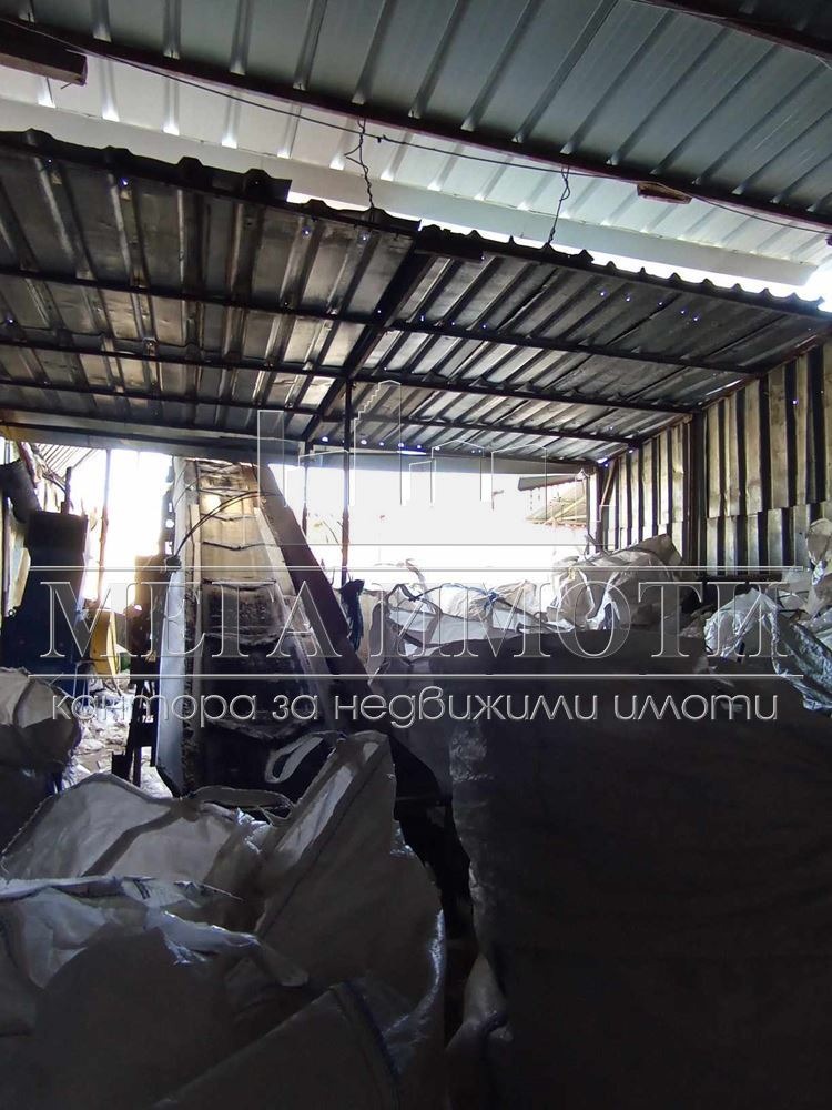 'Мега Имоти' предлага за продажба ограден промишлен имот. Състоящ се от три масивни постройки с обща квадратура 769 кв.м., навес от метална конструкция 500кв.м. разположени в поземлен имот със статут на складов обект с площ 4 420кв.м. Обекта е с разрешителни за РИОСВ за дейност работа и обработване на вторични суровини. Половината от застроената част е бетонен под, окачен таван и разпределение: офиси 2 броя, съблекални и стая за отдих за персонал, две сервизни помещения. В имота има собствен водоизточник, питейна вода и трифазно ел.захранване с мощност 300kw. Охранява се със СОТ. При интерес може да се закупи и с всички машини. Реф.номер 17 938